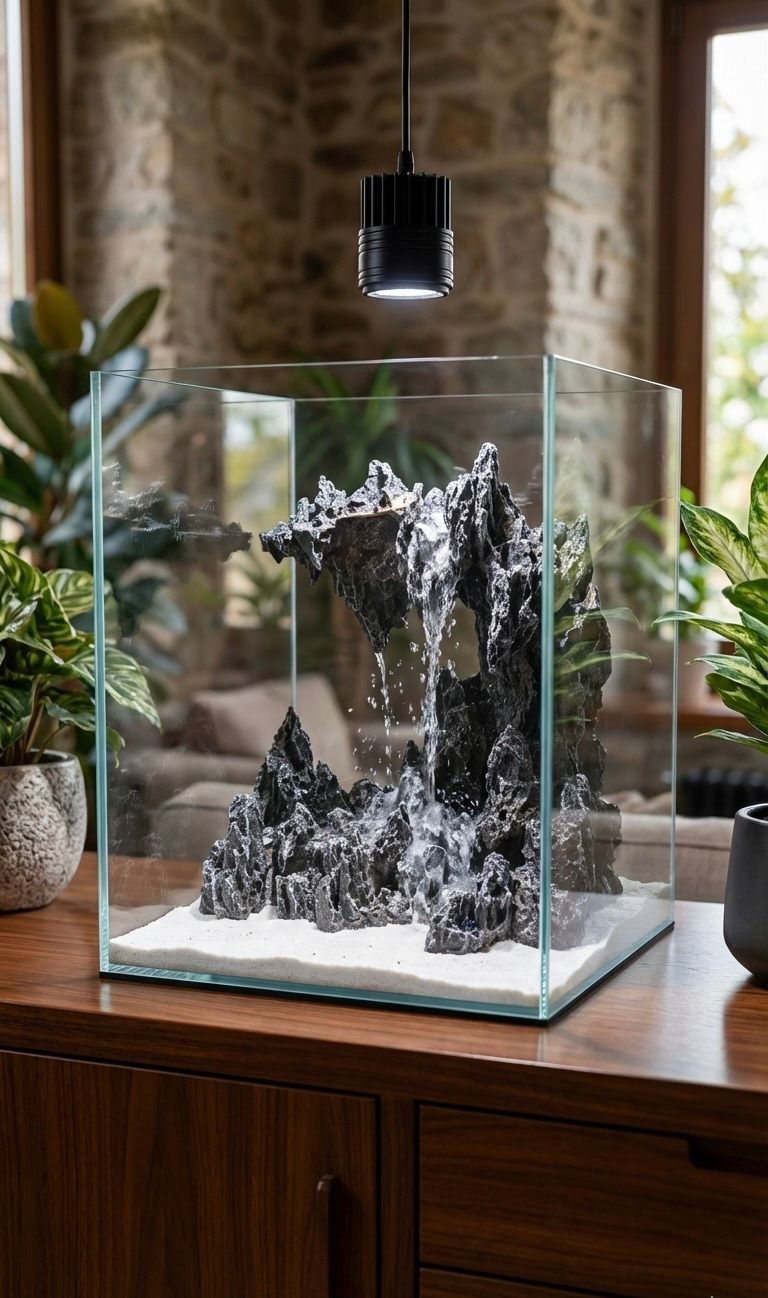. מפל חול דקורטיבי מובנה באקווריום