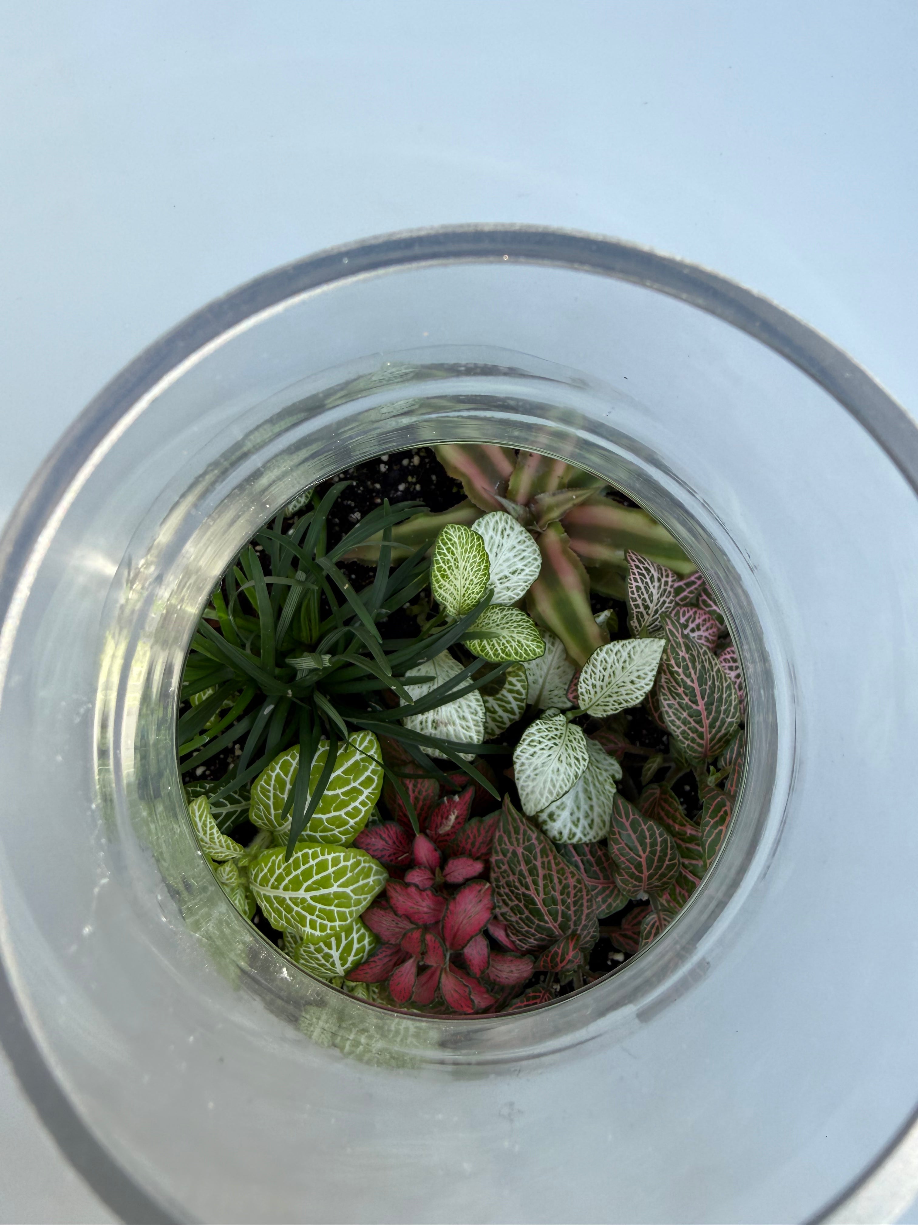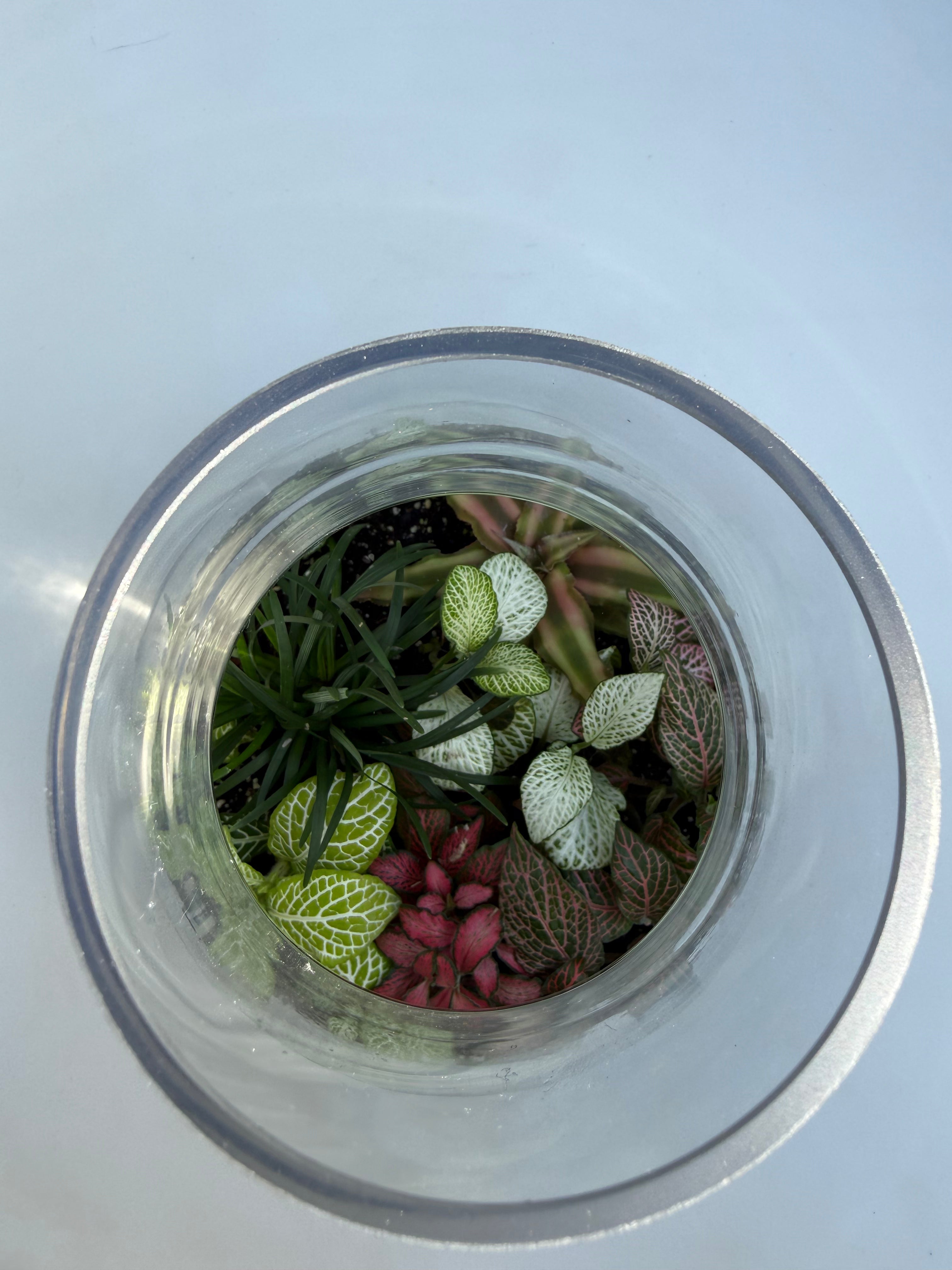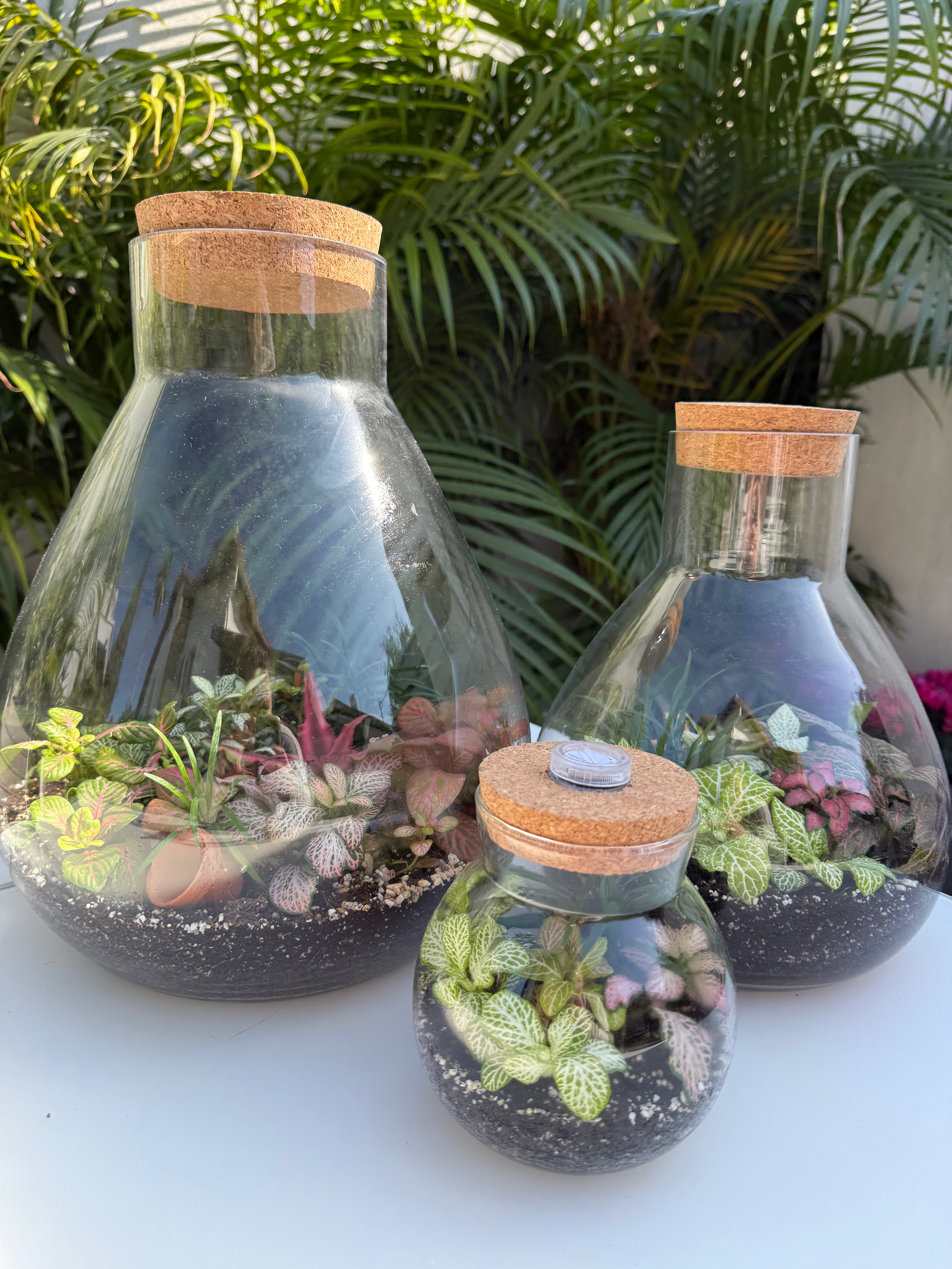 טרריום צמחים סגור הוא עולם קטן ושקט בתוך כלי זכוכית אטום.